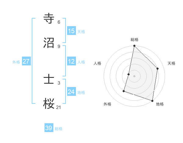 寺沼 士桜さんを姓名の画数から五運を鑑定