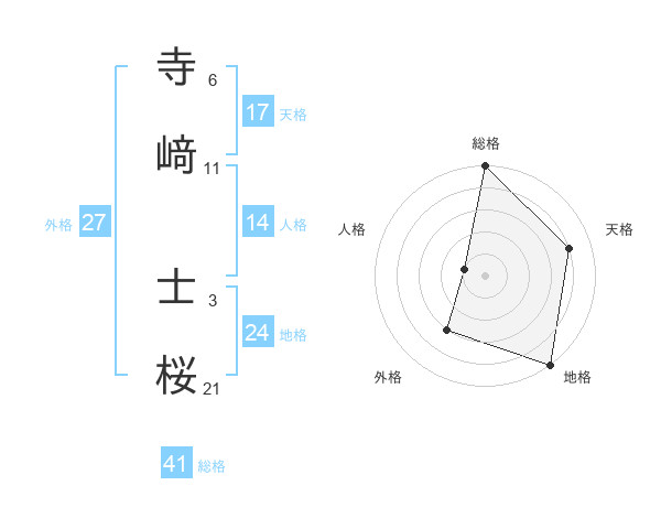 寺﨑 士桜さんの天格は17画の4点!