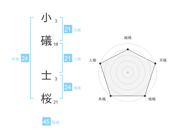 小礒 士桜さんの外格は24画の5点!