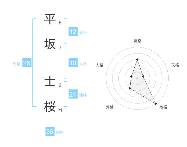 平坂 士桜さんを姓名の画数から五運を鑑定