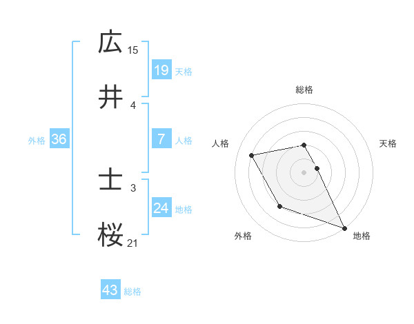 広井 士桜さんの総格は43画の2点!