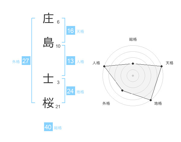 庄島 士桜さんの総格は40画の2点!