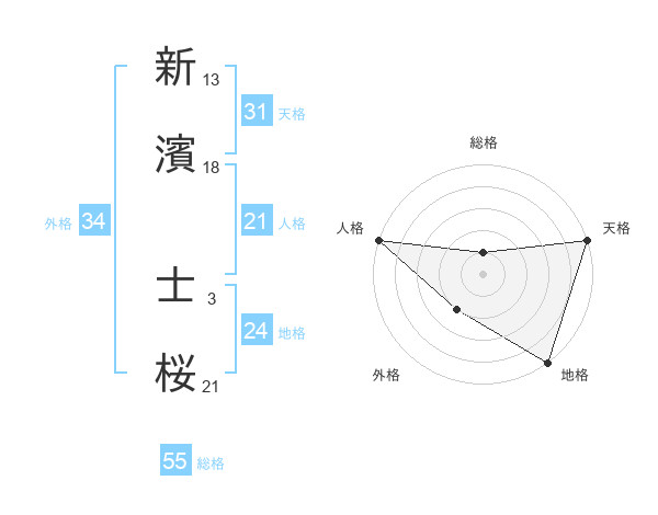 新濱 士桜さんの天格は31画の5点!