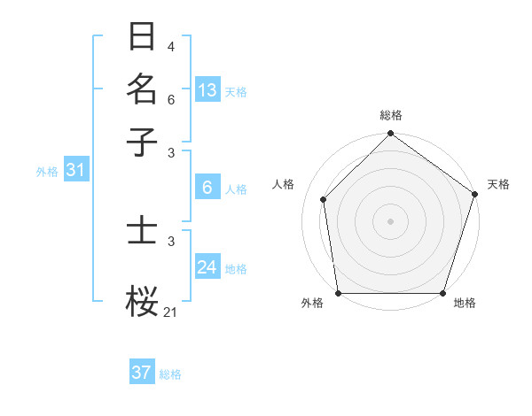 日名子 士桜さんの総格は37画の5点!
