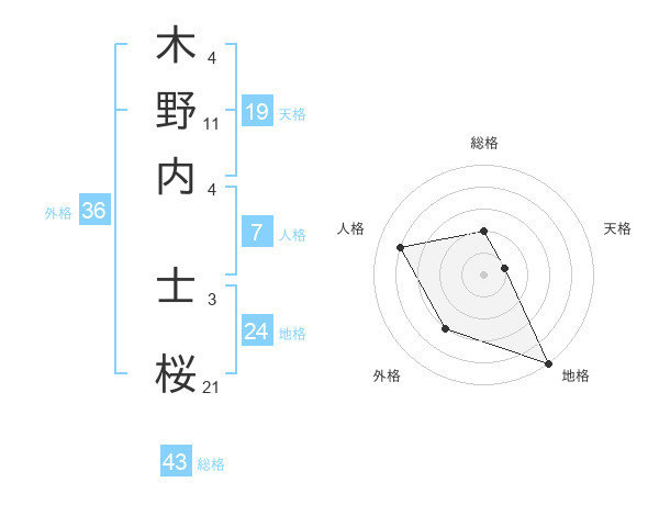 木野内 士桜さんを姓名の画数から五運を鑑定