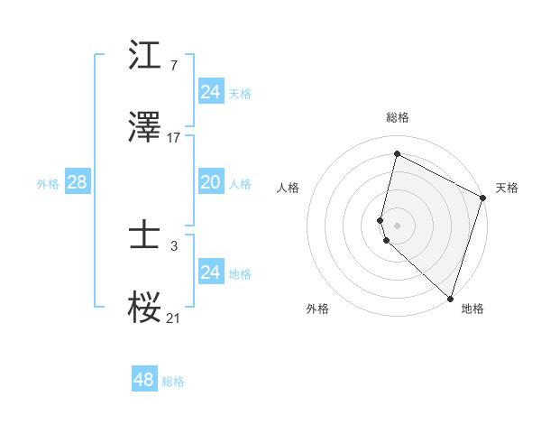 江澤 士桜さんの天格は24画の5点!