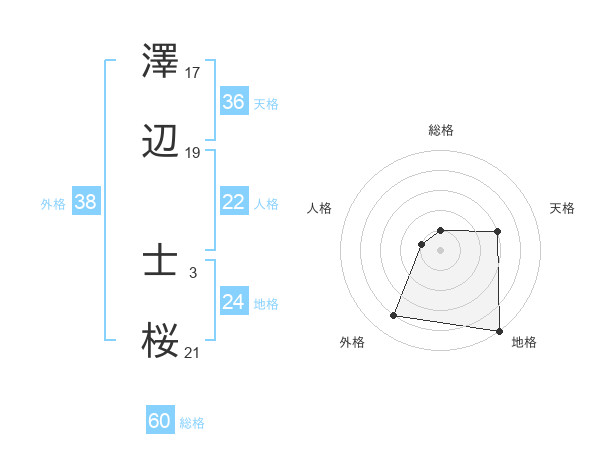 澤辺 士桜さんの外格は38画の4点!