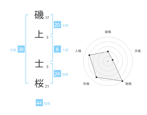磯上 士桜さんを姓名の画数から五運を鑑定