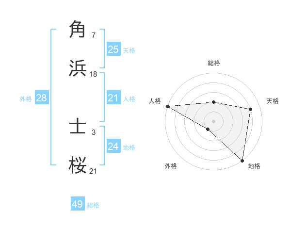 角浜 士桜さんの人格は21画の5点!