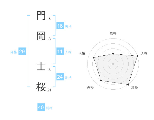 門岡 士桜さんの地格は24画の5点!