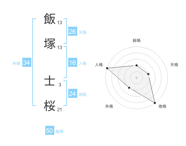 飯塚 士桜さんを姓名の画数から五運を鑑定