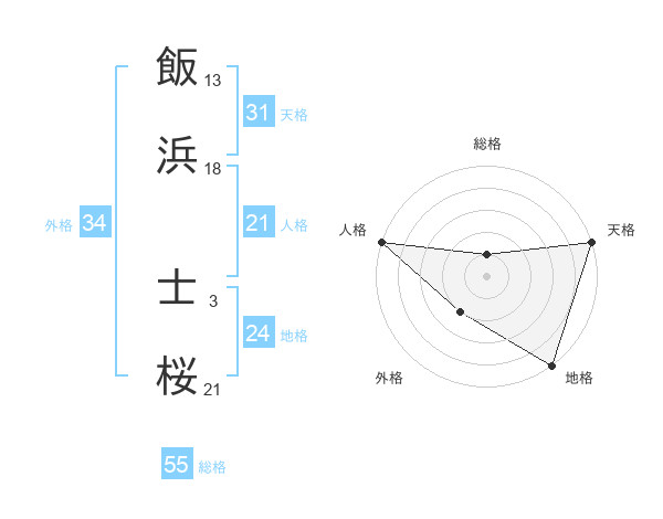 飯浜 士桜さんの天格は31画の5点!