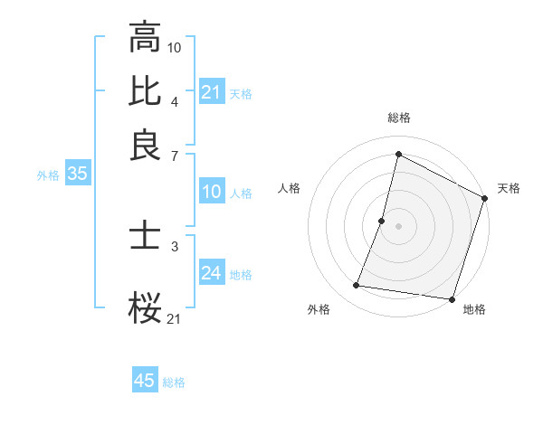 高比良 士桜さんの総格は45画の4点!