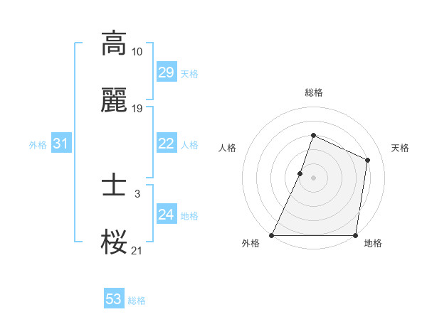 高麗 士桜さんを姓名の画数から五運を鑑定