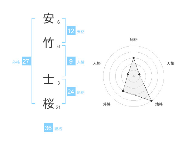 安竹 士桜さんの総格は36画の3点!