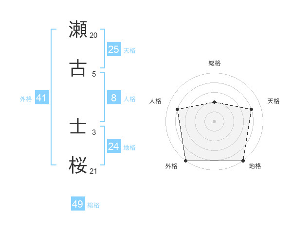 瀬古 士桜さんを姓名の画数から五運を鑑定