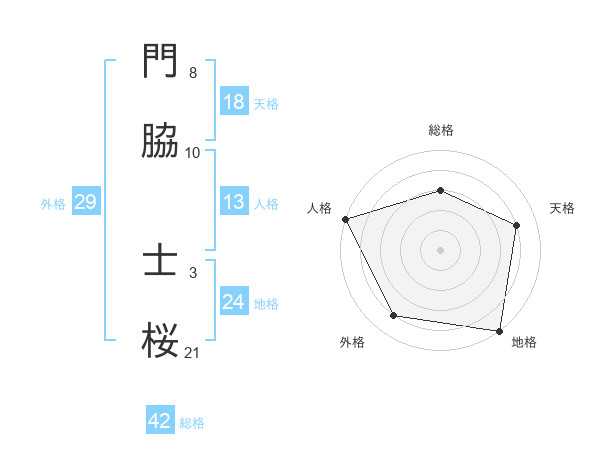 門脇 士桜さんを姓名の画数から五運を鑑定