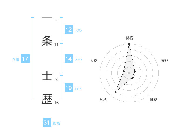 一条 士歴さんの外格は17画の4点!