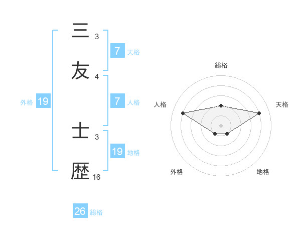 三友 士歴さんの総格は26画の2点!