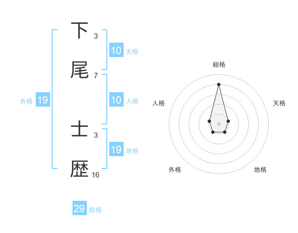 下尾 士歴さんの総格は29画の4点!