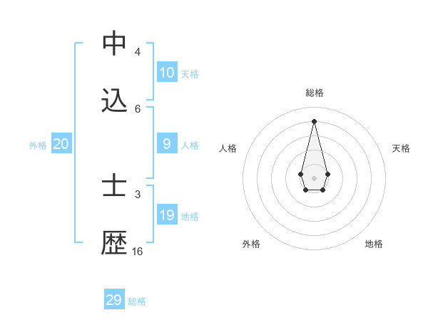 中込 士歴さんの総格は29画の4点!
