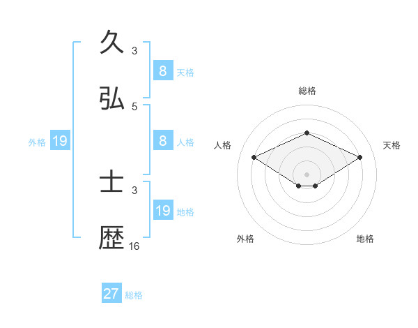 久弘 士歴さんを姓名の画数から五運を鑑定
