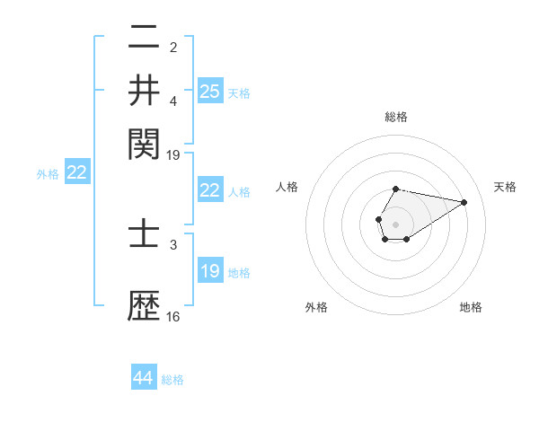 二井関 士歴さんの総格は44画の2点!