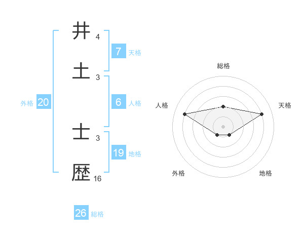 井土 士歴さんの総格は26画の2点!
