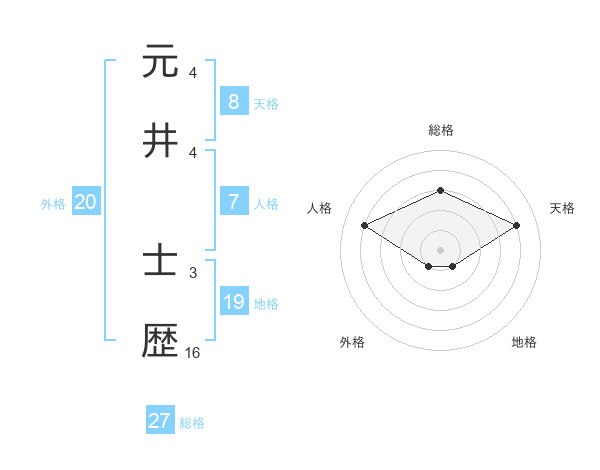 家系が持つ宿命的な運勢を表します。祖先から受け継いだ苗字ですので自分の力が及びません。家柄を象徴します。