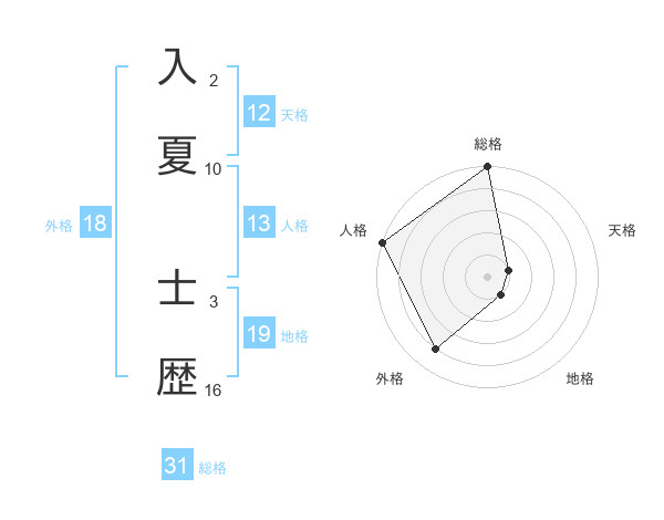 入夏 士歴さんの外格は18画の4点!