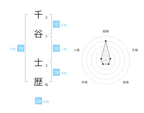 千谷 士歴さんの総格は29画の4点!