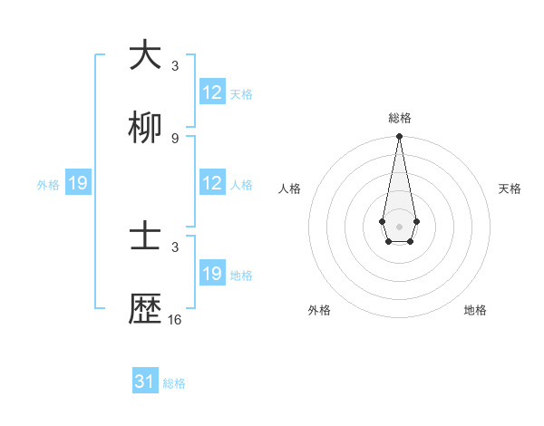 大柳 士歴さんを姓名の画数から五運を鑑定