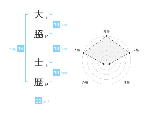 大脇 士歴さんを姓名の画数から五運を鑑定
