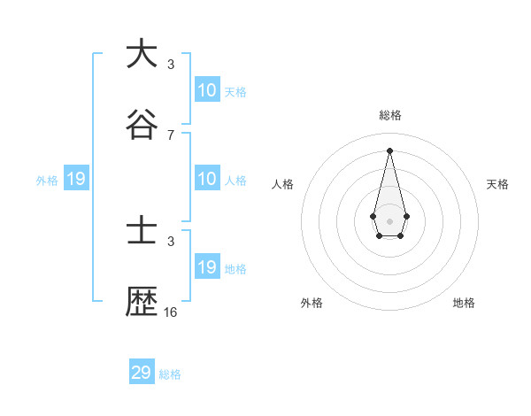 大谷 士歴さんを姓名の画数から五運を鑑定