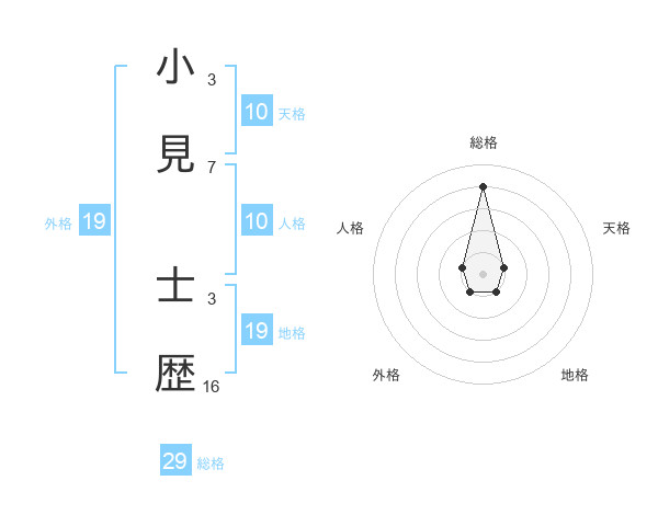 小見 士歴さんの総格は29画の4点!