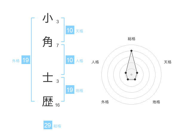 小角 士歴さんの総格は29画の4点!