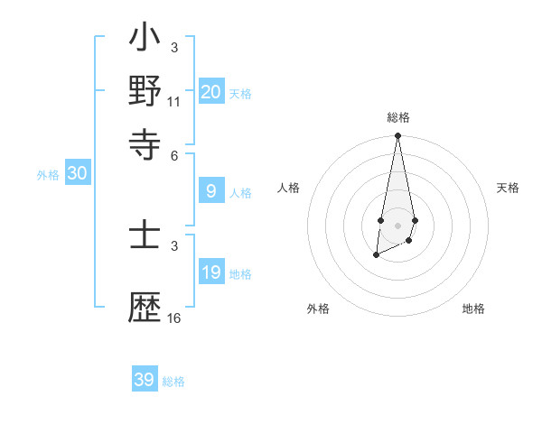 小野寺 士歴さんの総格は39画の5点!