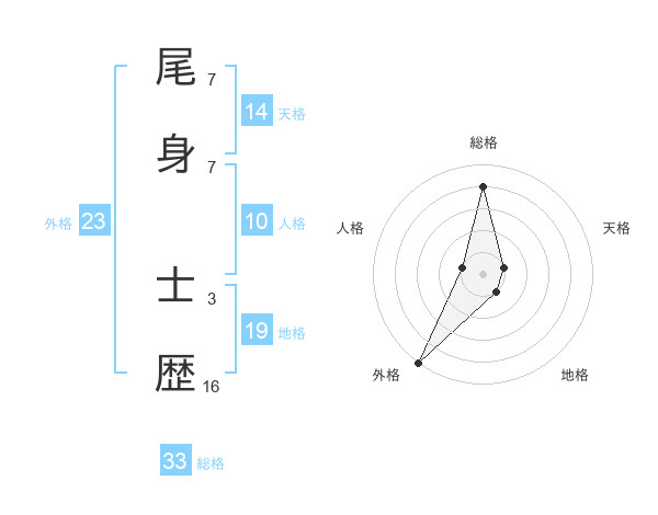 尾身 士歴さんを姓名の画数から五運を鑑定
