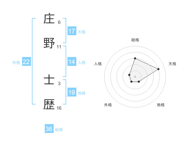 庄野 士歴さんの天格は17画の4点!