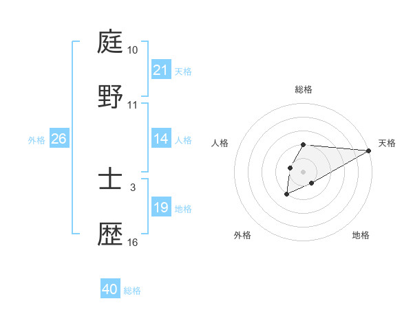庭野 士歴さんの天格は21画の5点!