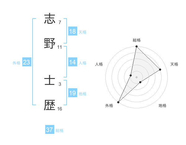 志野 士歴さんの総格は37画の5点!
