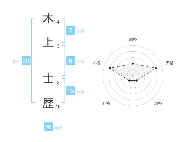 木上 士歴さんの総格は26画の2点!
