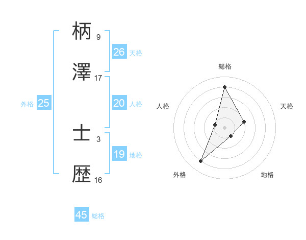 柄澤 士歴さんを姓名の画数から五運を鑑定