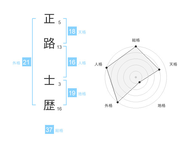 正路 士歴さんの地格は19画の1点!