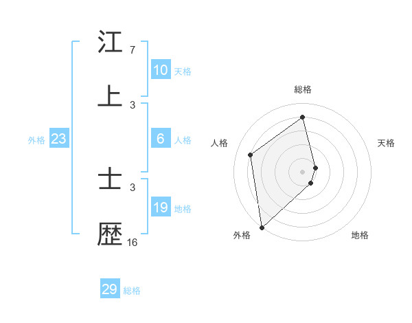 江上 士歴さんの総格は29画の4点!