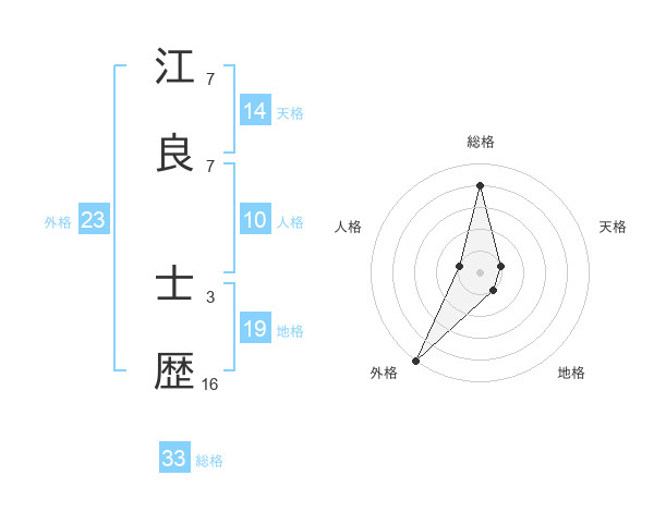 江良 士歴さんの総格は33画の4点!