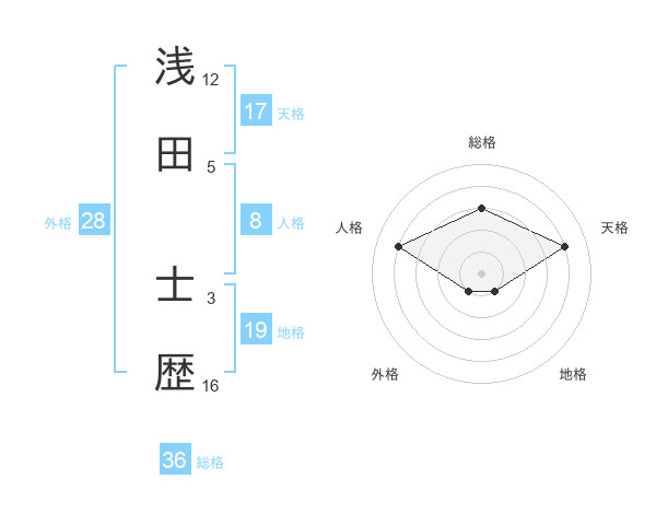 浅田 士歴さんの天格は17画の4点!