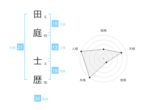 田庭 士歴さんの地格は19画の1点!
