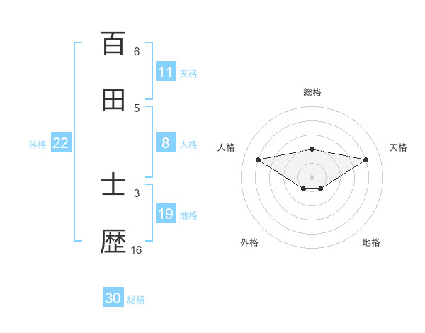 百田 士歴さんの総格は30画の2点!