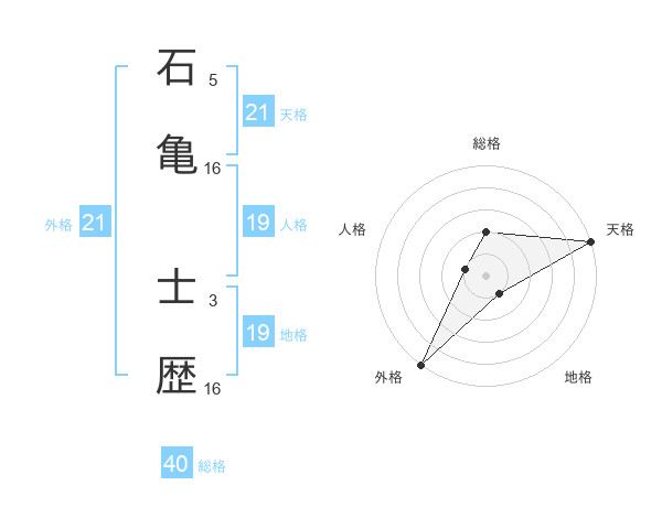 石亀 士歴さんの天格は21画の5点!